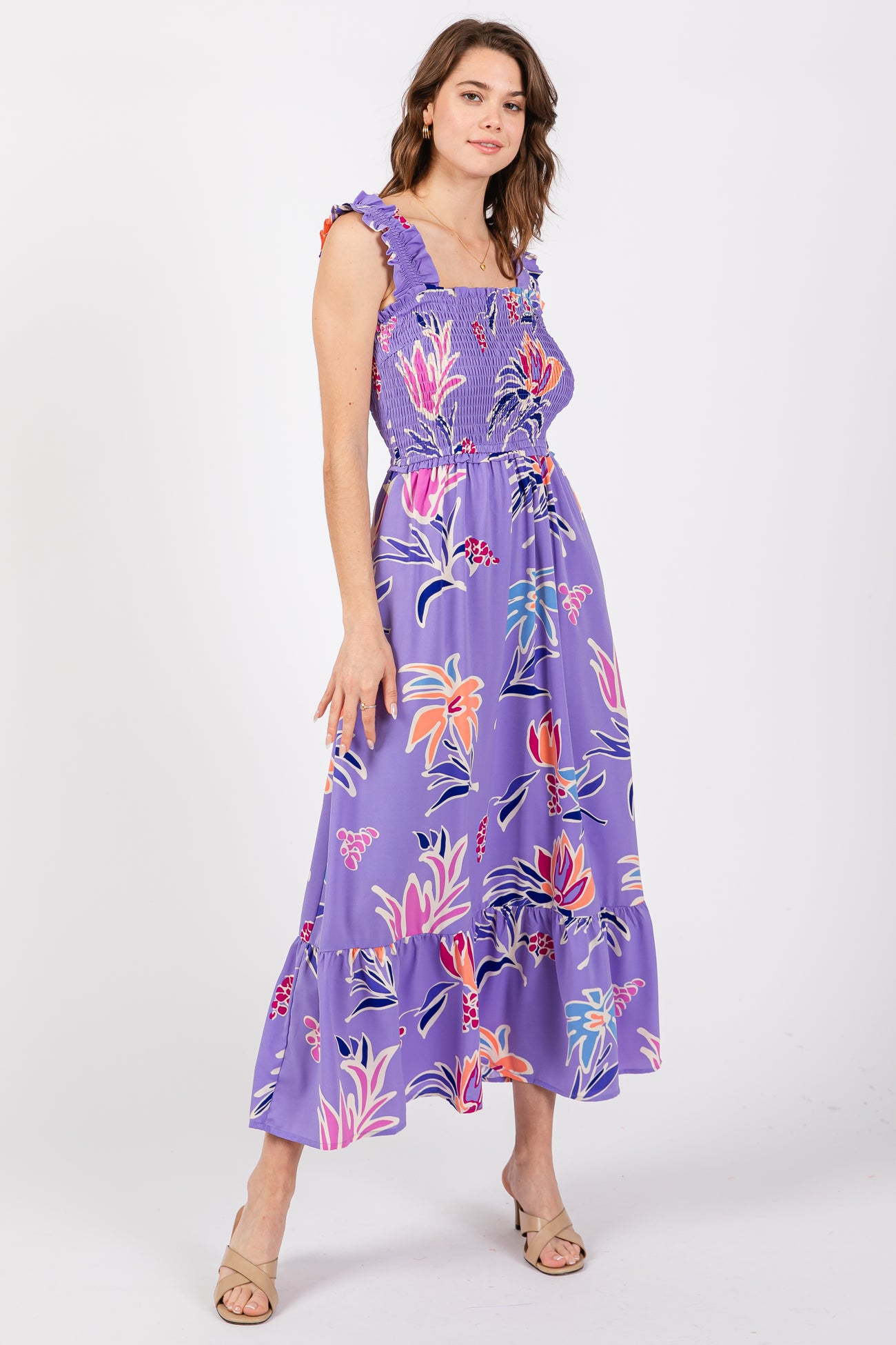 Lavender Floral Smocked Maternity Midi Dress