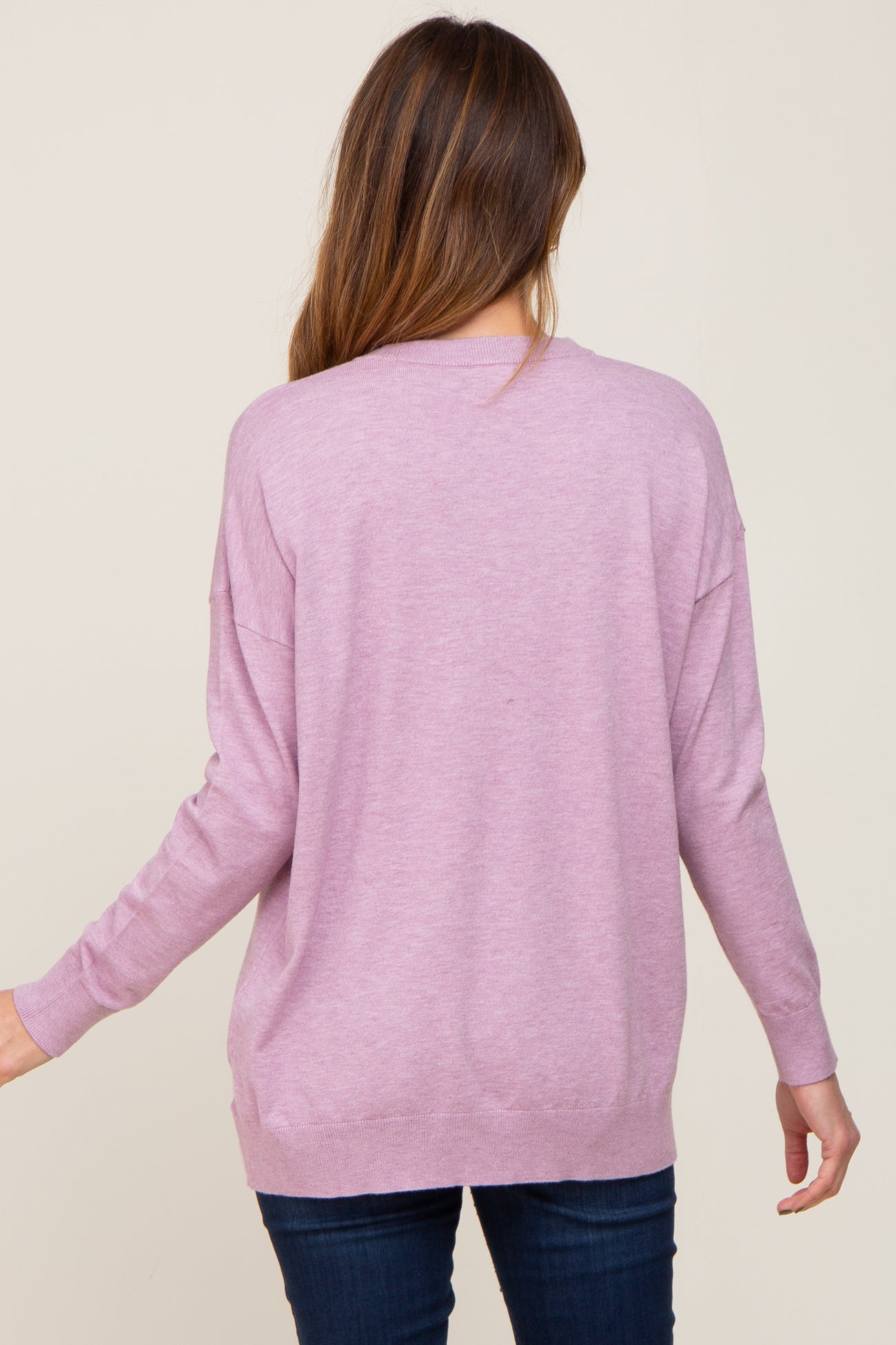 A knit top featuring long sleeves, a ribbed hem and a rounded ribbed neckline.