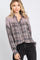 A mixed plaid top featuring long sleeves, a button front, a collared neckline and a textured bottom half.