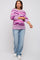 An open knit maternity sweater featuring a rounded neckline. Ribbed along the neckline, sleeves, and bottom hem.