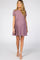 A soft ribbed knit maternity dress featuring a rounded neckline, short puff sleeves, side pockets and a pleated elastic waistband.
