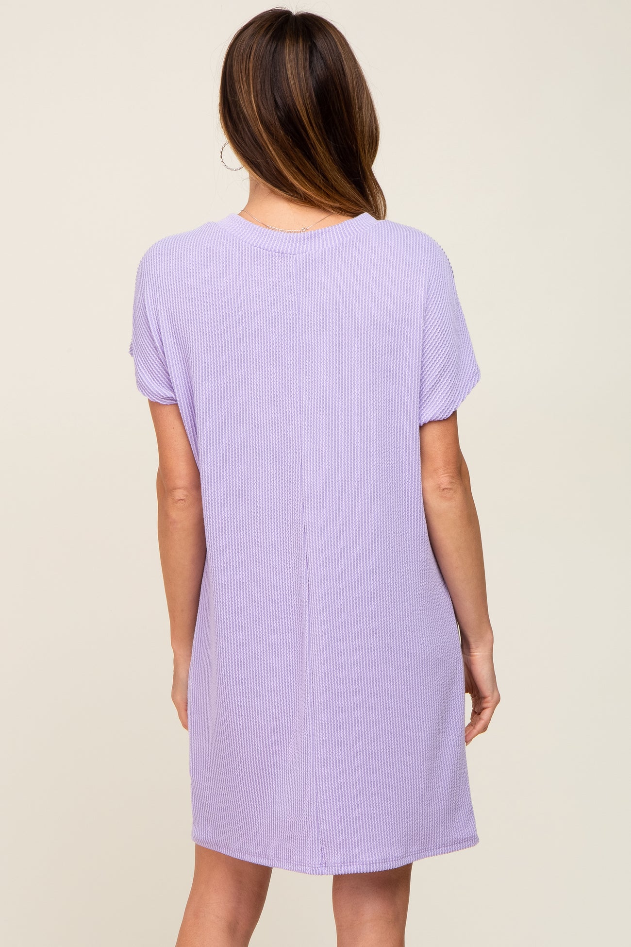 Lavender Ribbed Front Pocket Dolman Short Sleeve Dress