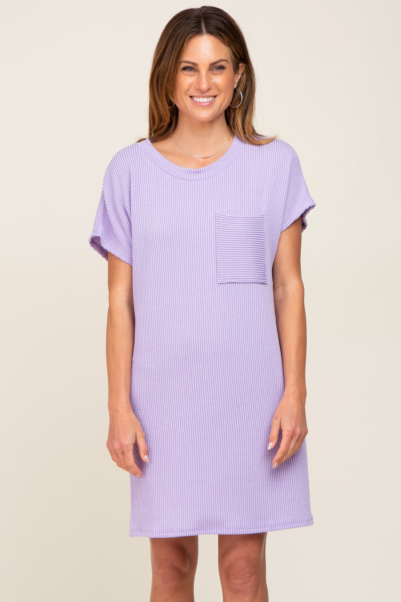 Lavender Ribbed Front Pocket Dolman Short Sleeve Maternity Dress