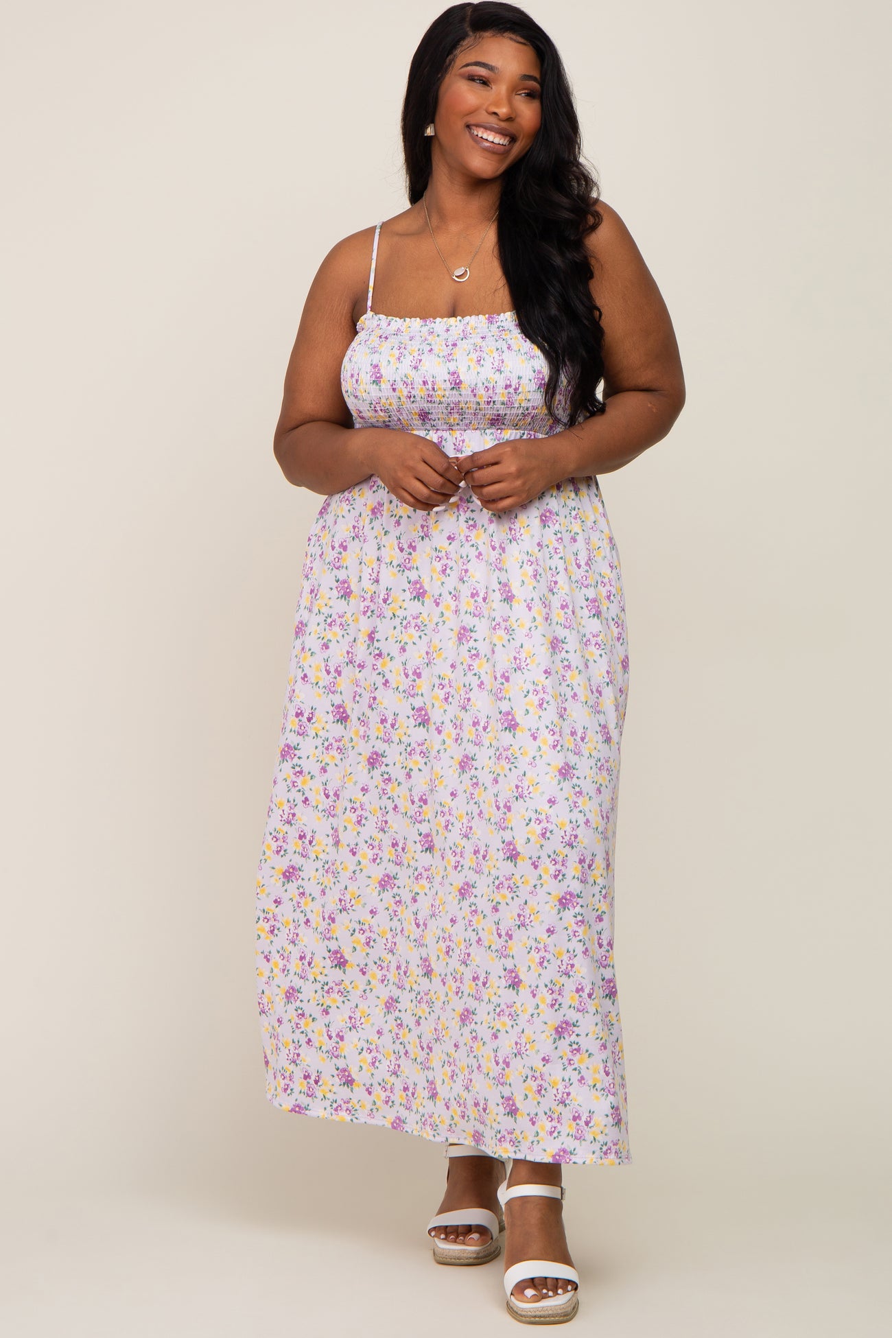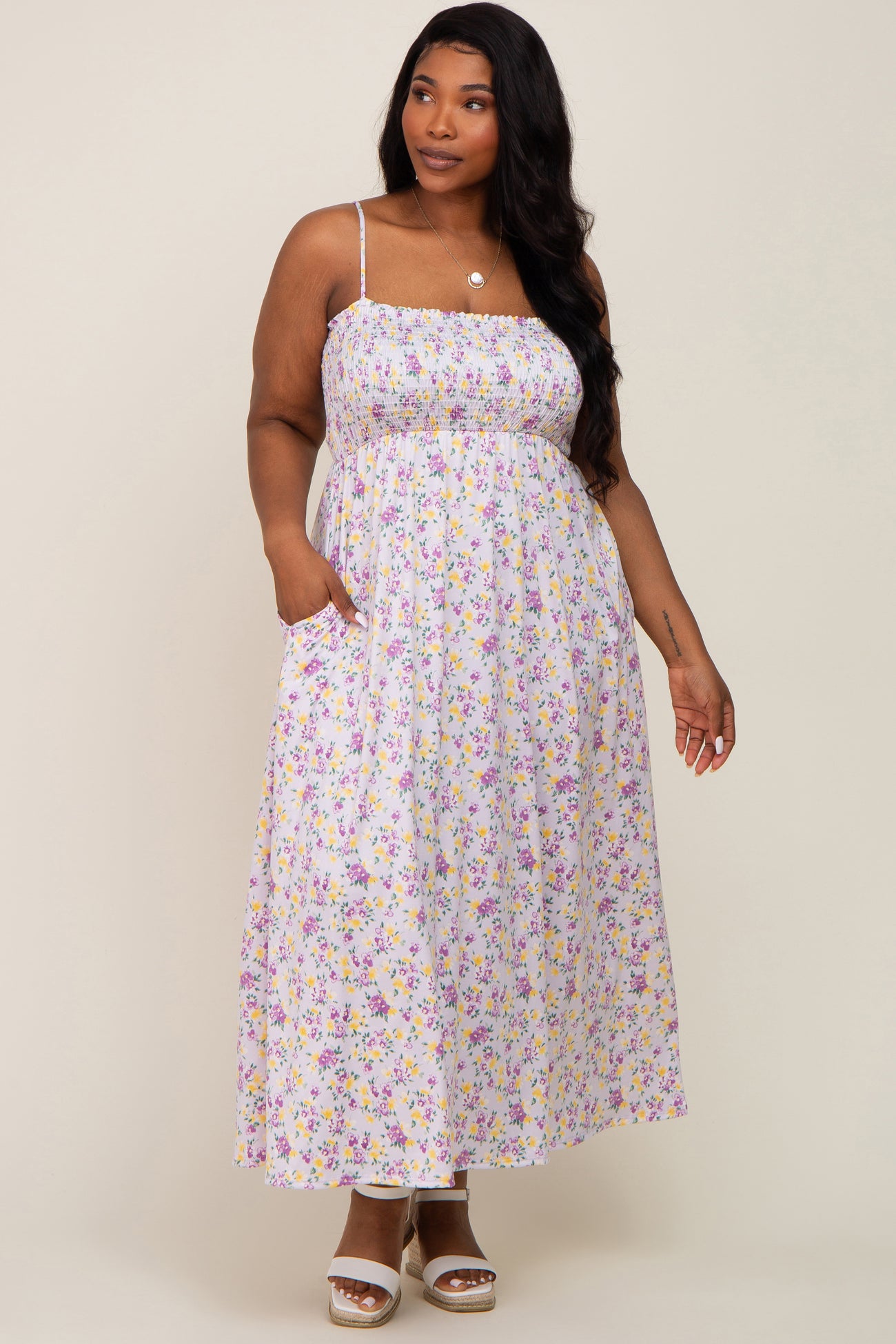 Details An ultra soft knit, floral printed plus midi dress featuring a square neckline, a smocked elastic top, adjustable cami straps and side pockets. Content + Care