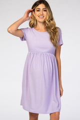 Lavender Swiss Dot Short Sleeve Maternity Dress