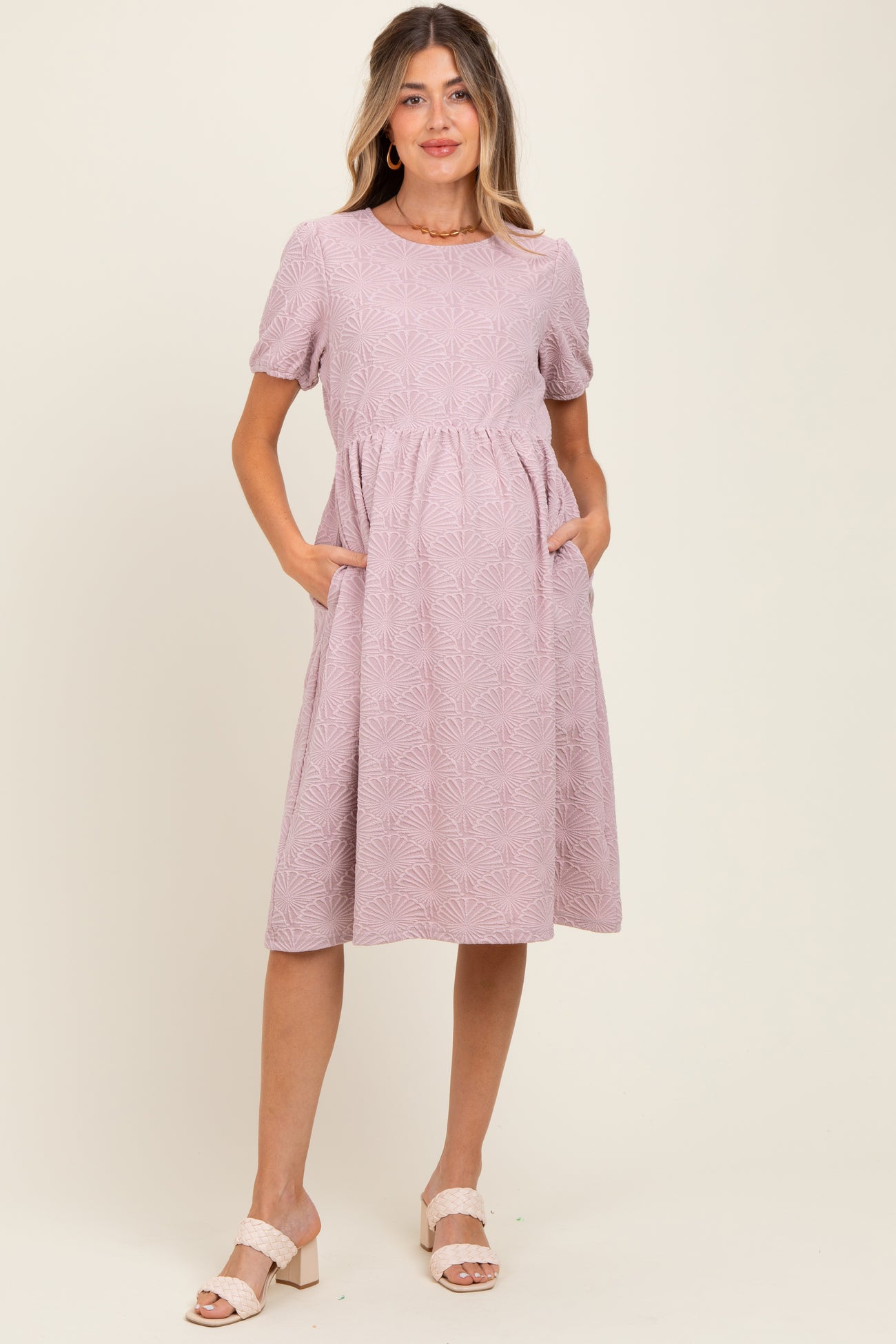 Lavender Textured Knit Maternity Midi Dress