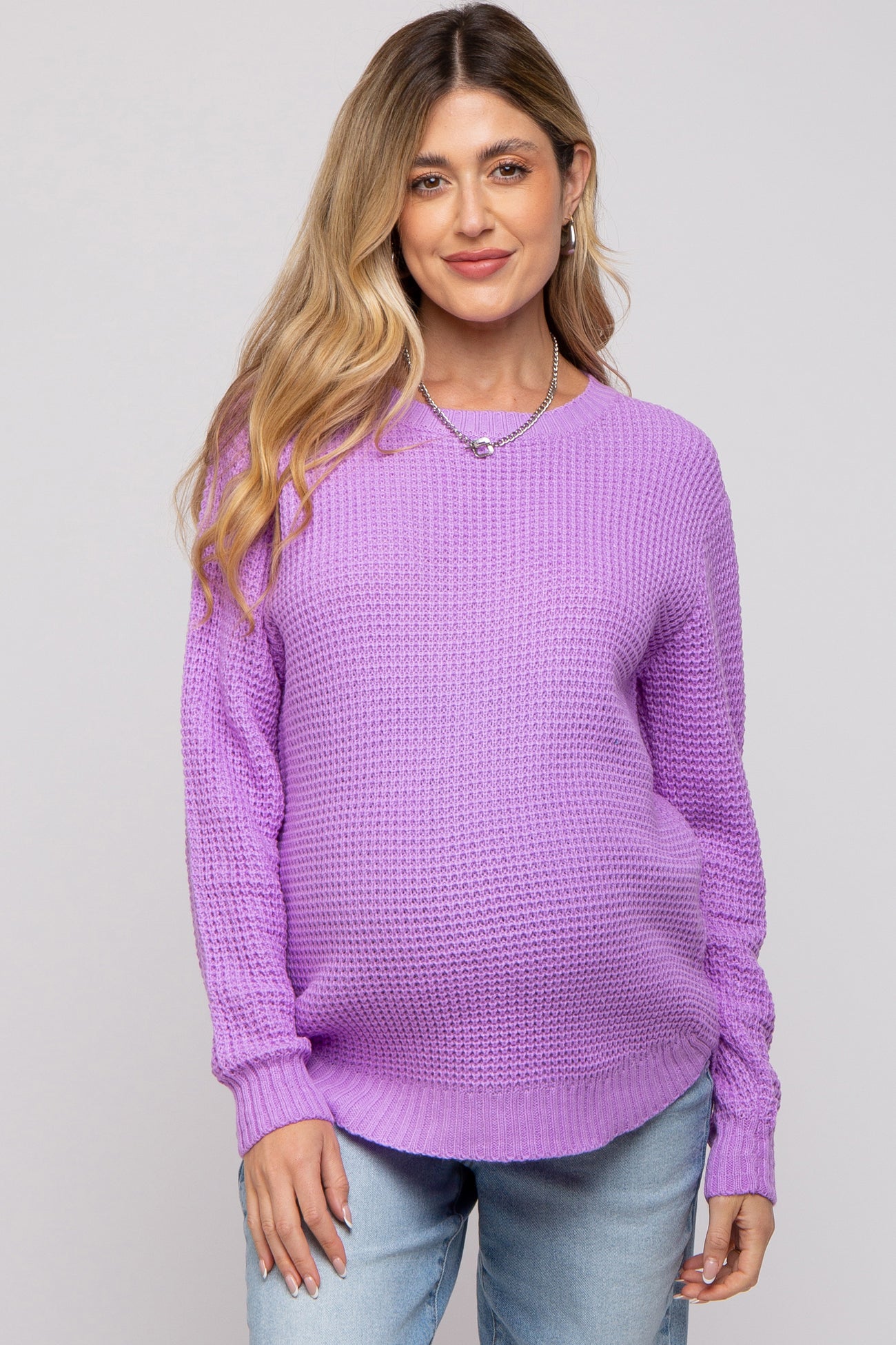 Lavender Waffle Knit Round Hem Maternity Sweater