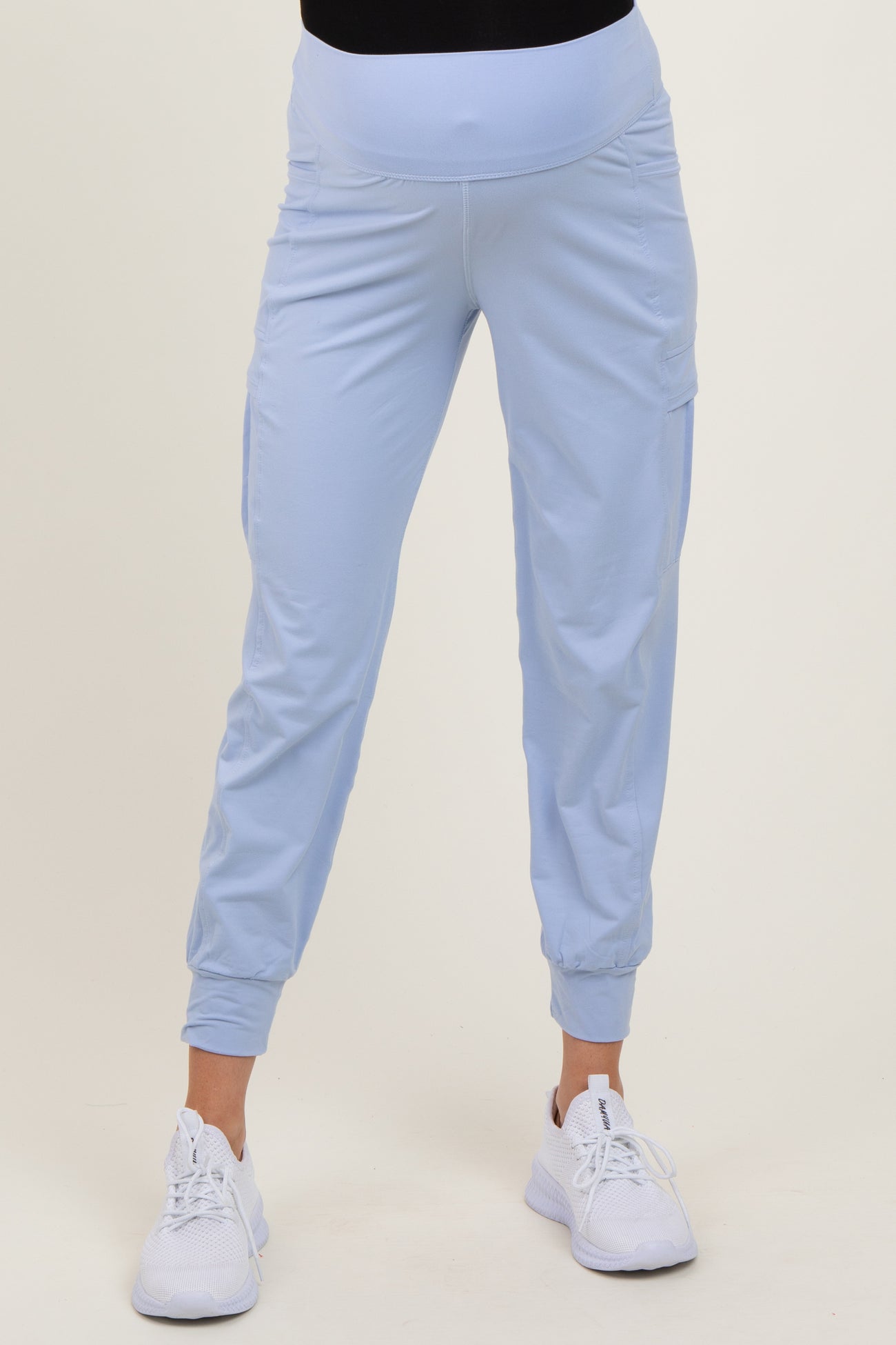 Light Blue Cargo Pocket Maternity Jogger Pants
