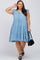 Light Blue Chambray Tiered Button Accent Plus Dress