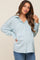 Light Blue Checkered Satin Button Up Maternity Top