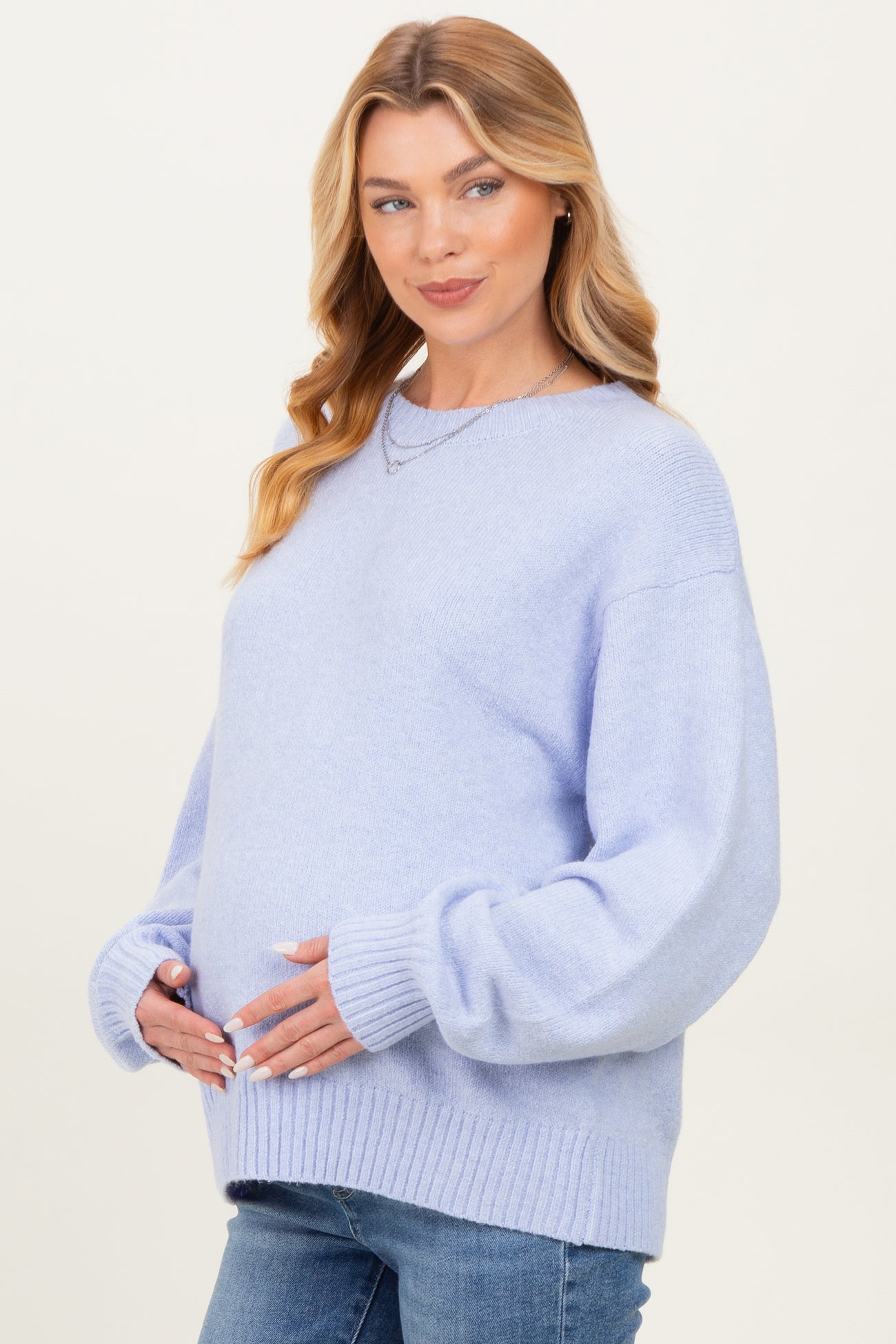 Light Blue Chunky Knit Oversized Maternity Sweater