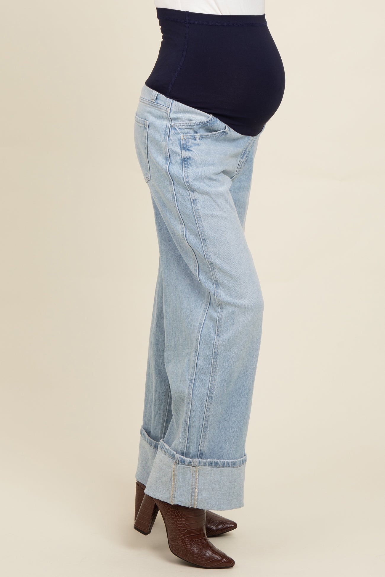 Light Blue Cuffed Relaxed Wide Leg Maternity Jeans