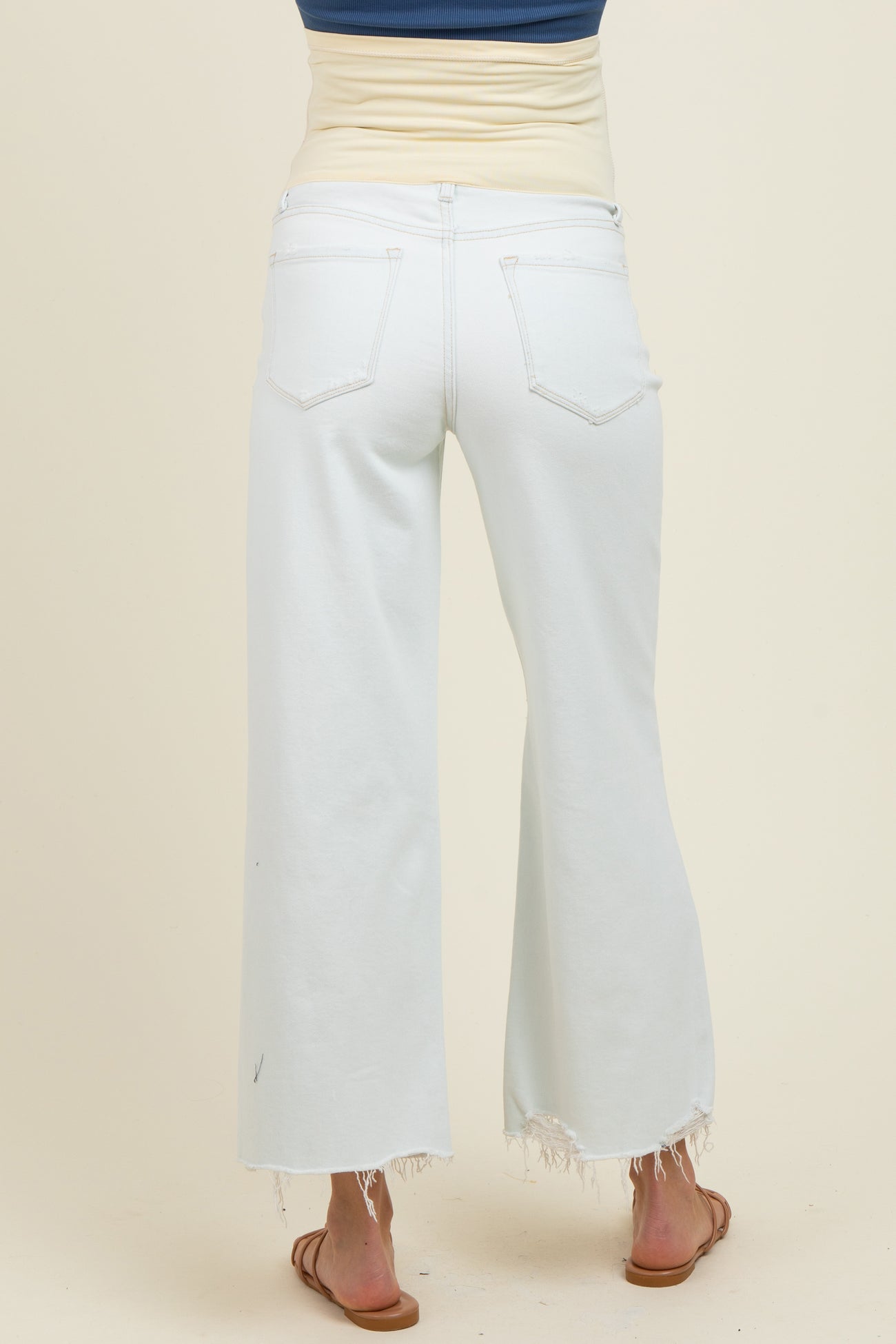 Light Blue Distressed Open Knee Cropped Wide Leg Maternity Jeans