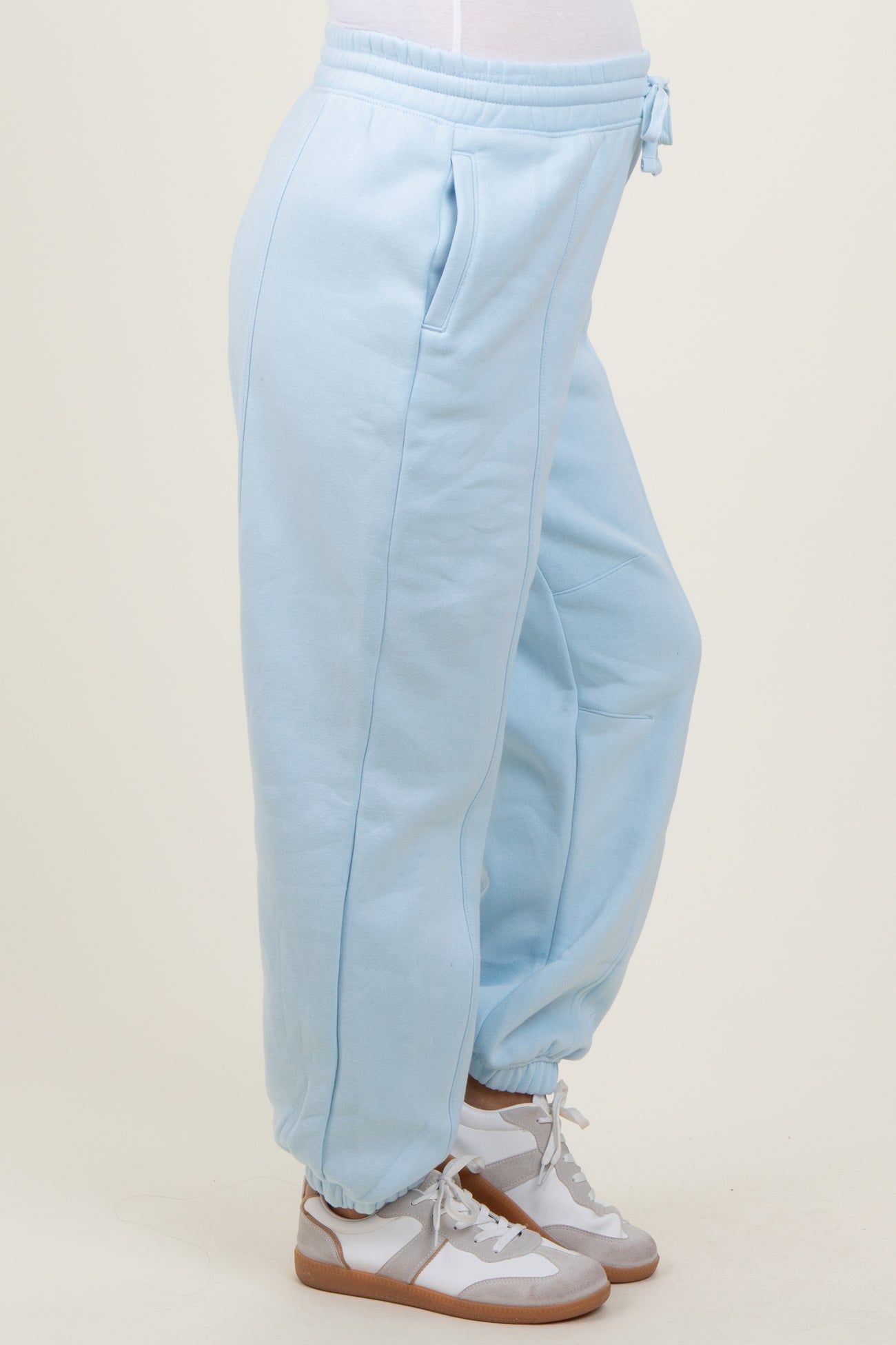 Light Blue Drawstring Relaxed Fit Maternity Sweatpants