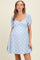 Light Blue Embroidered Gingham Sweetheart Neck Maternity Mini Dress