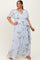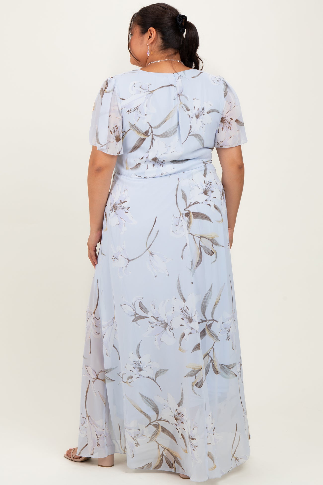 Light Blue Floral Chiffon Sash Tie Plus Maxi Dress