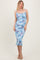 Light Blue Floral Ruched Low Tie Back Midi Dress
