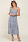 Light Blue Floral Smocked Shoulder Tie Midi Dress