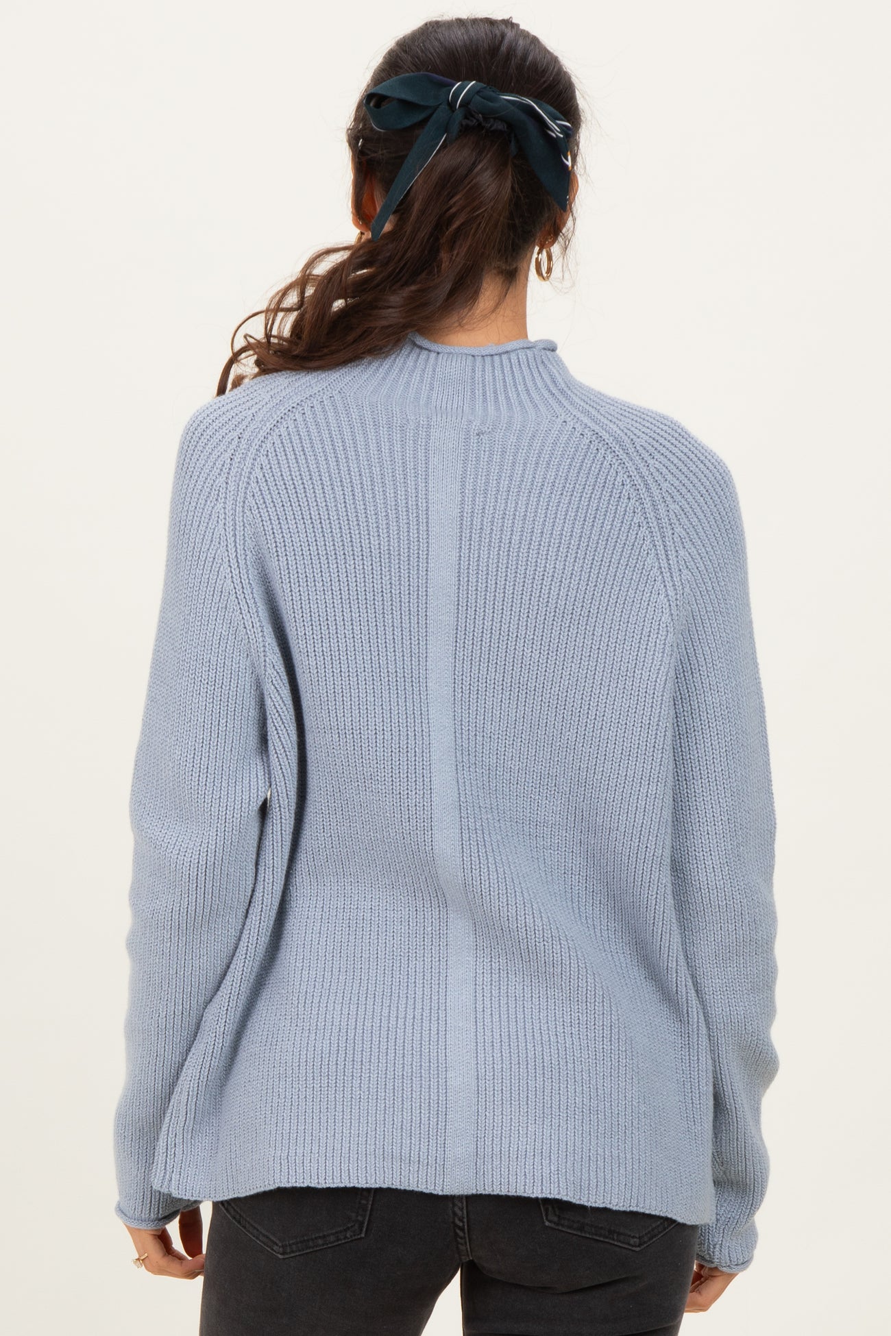Light Blue Mock Neck Ribbed Knit Basic Sweater Top