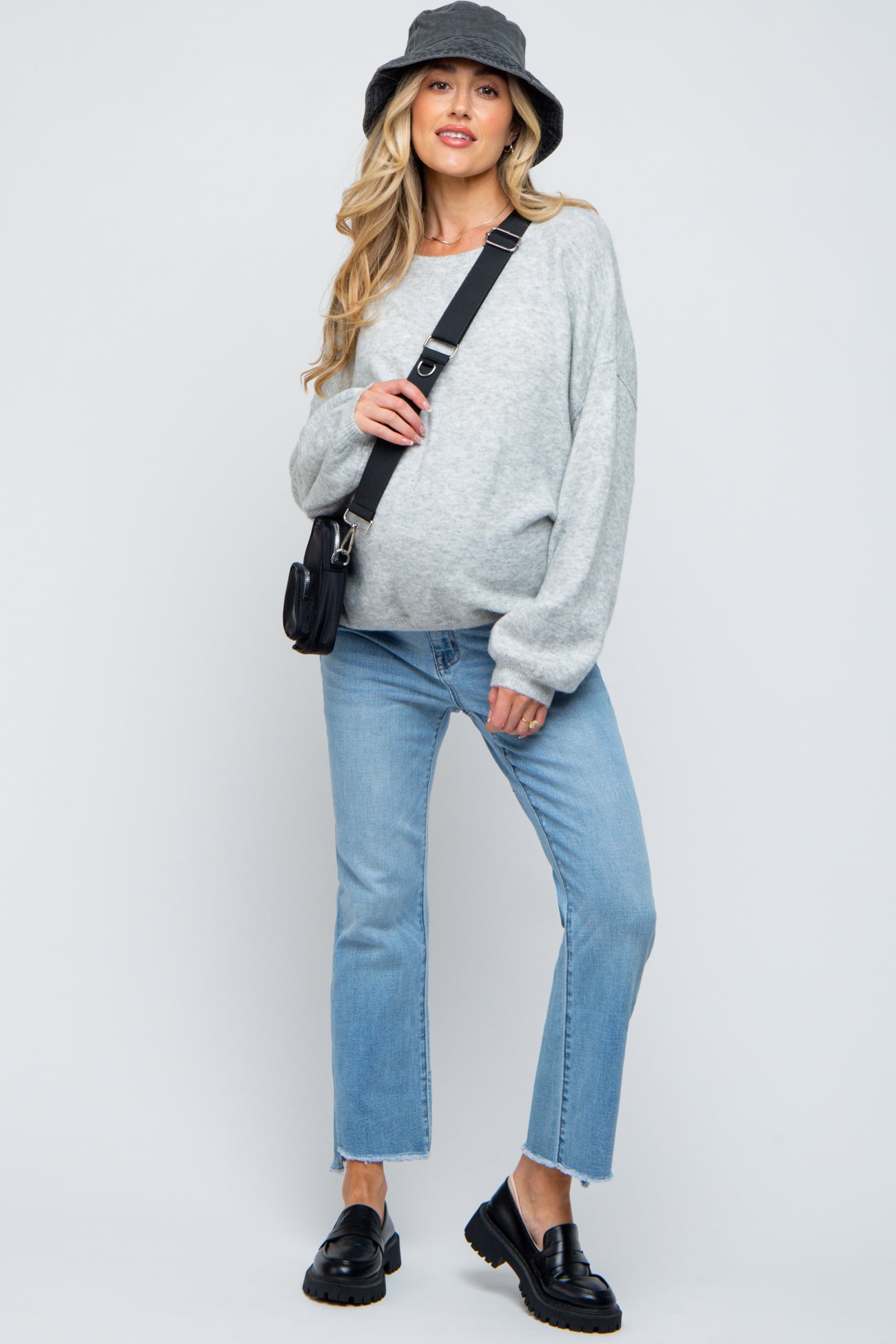 Meet your new go-to jeans: our Raw Edge Crop Maternity Jeans! Designed with a soft, stretchy belly panel, these jeans comfortably support your growing bump through every trimester. The chic cropped cut and trendy raw hem make them perfect for pairing with sneakers or sandals. Crafted from premium denim with plenty of stretch, they offer all-day comfort without sacrificing style. Whether you’re out for brunch or running errands, these jeans keep you looking fresh and feeling amazing throughout your pregnancy journey. Upgrade your maternity wardrobe with this must-have staple!