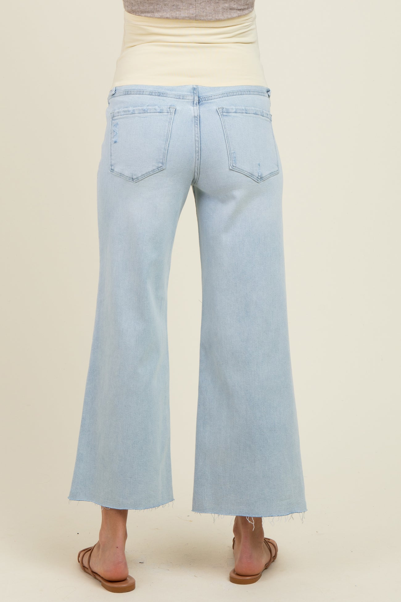 Light Blue Raw Hem Cropped Wide Leg Maternity Jeans