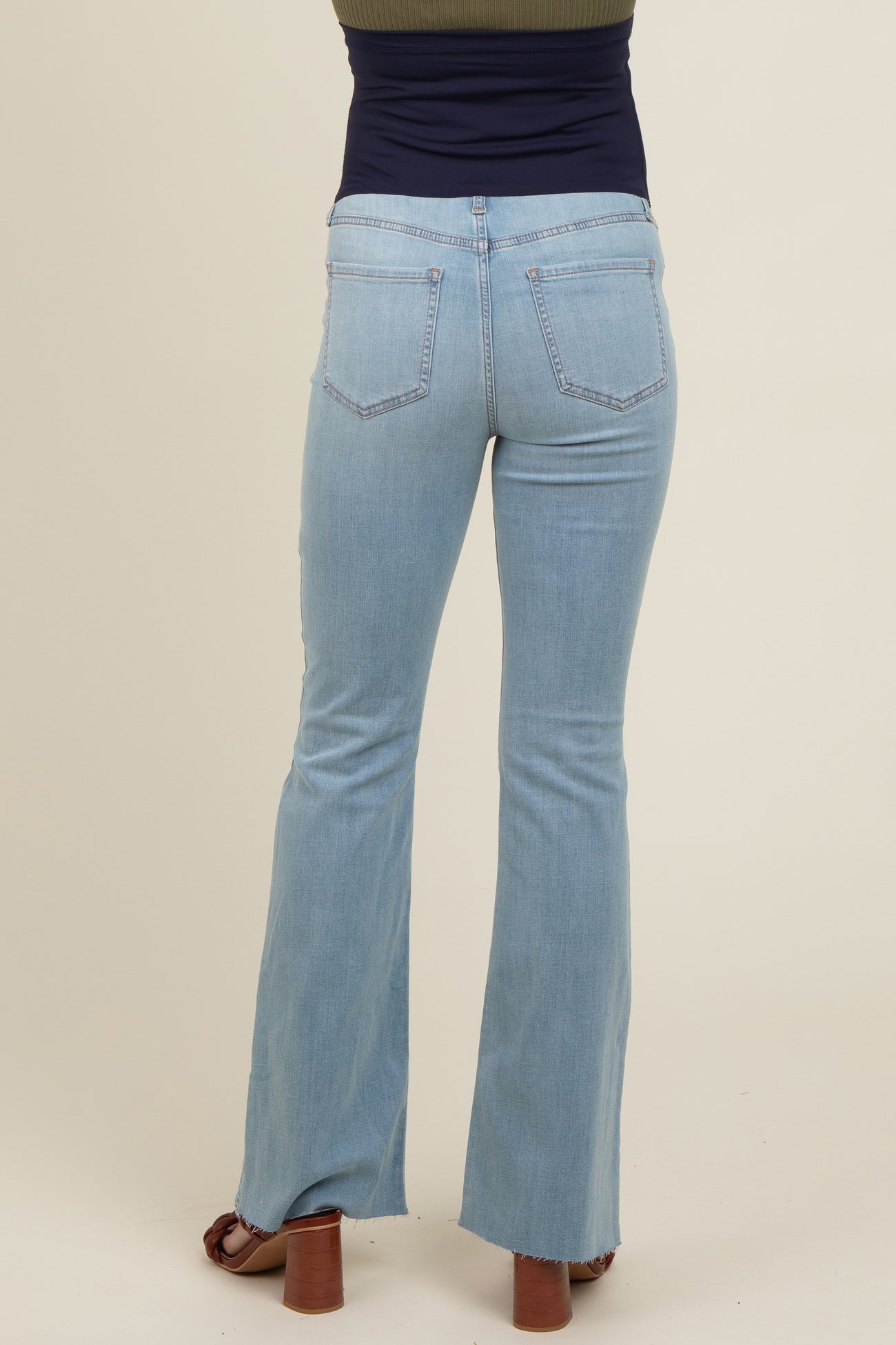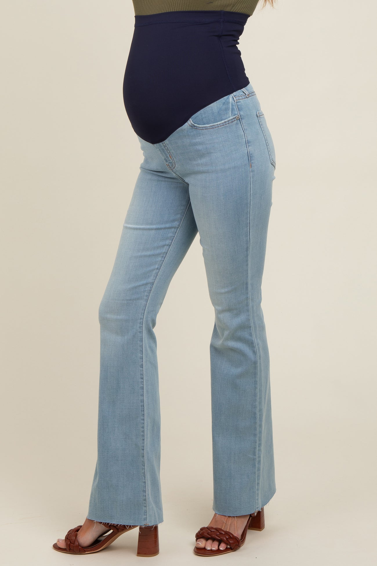 Light Blue Raw Hem Maternity Bootcut Jeans
