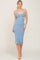 A ribbed midi dress featuring a v-neckline, cami straps and a side to back cutout.