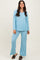 Light Blue Ribbed Soft Knit Long Sleeve Pajama Set