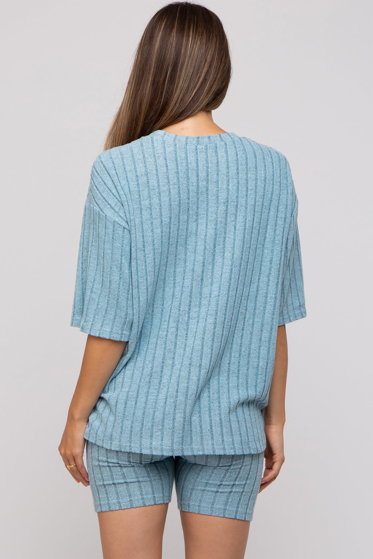 Light Blue Ribbed Soft Short Sleeve Maternity Shorts Set