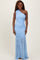 Light Blue Ruched Mesh One Shoulder Maxi Dress