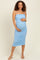 Light Blue Ruched Mesh Sleeveless Maternity Midi Dress