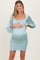 Light Blue Satin Smocked Bubble Sleeve Maternity Mini Dress