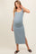A solid side ruched maternity dress that includes short sleeves, round neckline, and side slit.