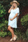 A solid hued maternity dress featuring a v-neckline, a smocked elastic top, short ruffle sleeves, an empire waist, a ruffle hem and double lined.