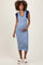 Light Blue Striped Ribbed Ruffle Sleeve Open Back Maternity Midi Dress