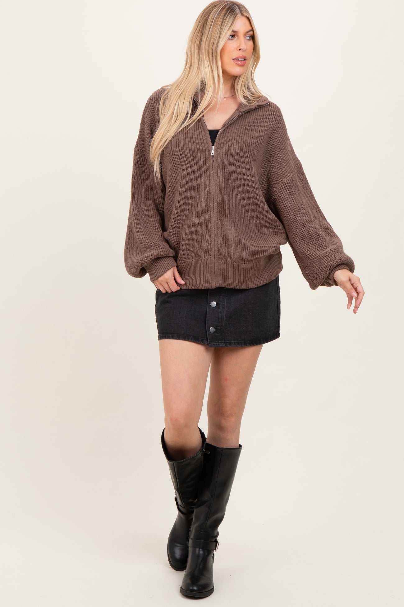 Stay cozy and stylish with our Light Mocha Oversized Zip Up Cardigan. Crafted from a soft, chunky knit, this cardigan features a relaxed fit and drop shoulders for an effortlessly chic vibe. The full zip front allows for easy layering, while the balloon sleeves add a trendy touch. Perfect for cooler days, this versatile piece pairs beautifully with denim, skirts, or leggings. Whether you're lounging at home or out on the town, this cardigan offers comfort without sacrificing style. Embrace laid-back fashion with this must-have wardrobe staple in a warm, neutral mocha shade.