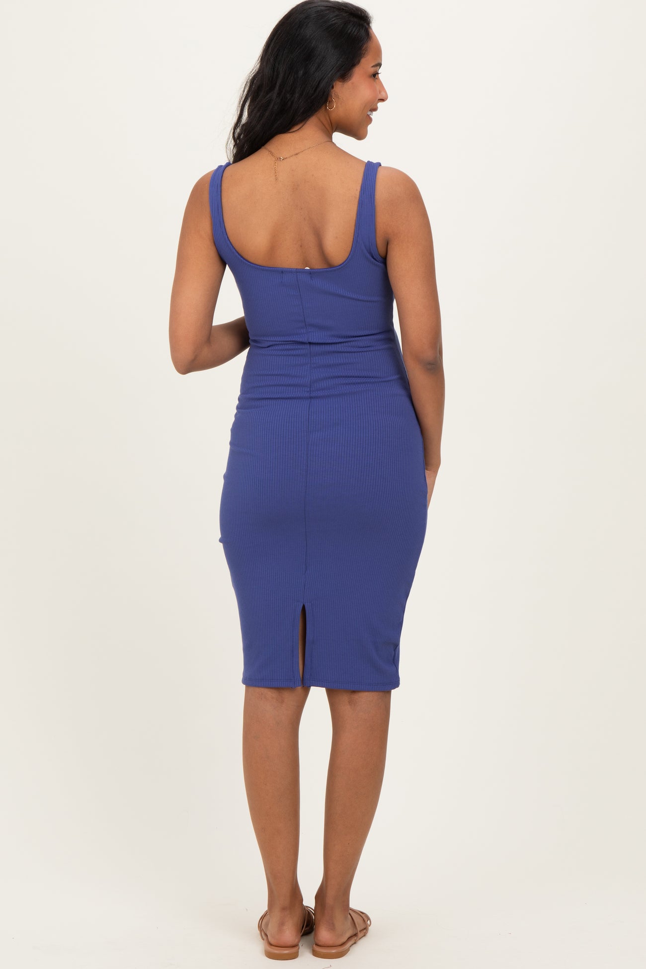 Light Navy Ribbed Square Neck Maternity Tank Dress