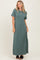 Light Olive Basic Side Slit Short Sleeve Midi Dress