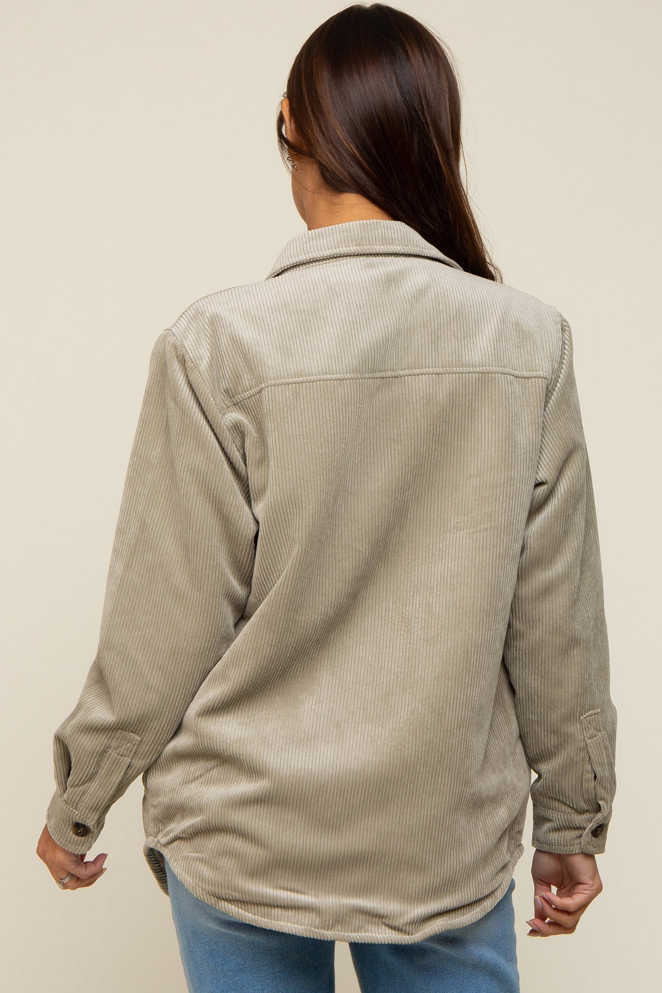 Light Olive Corduroy Plaid Fleece Lined Button Down Maternity Shacket