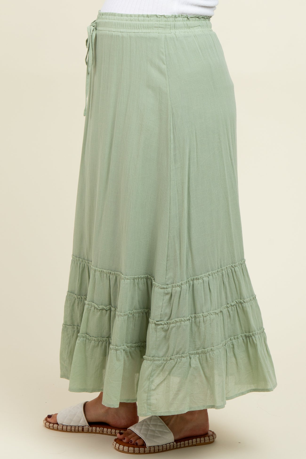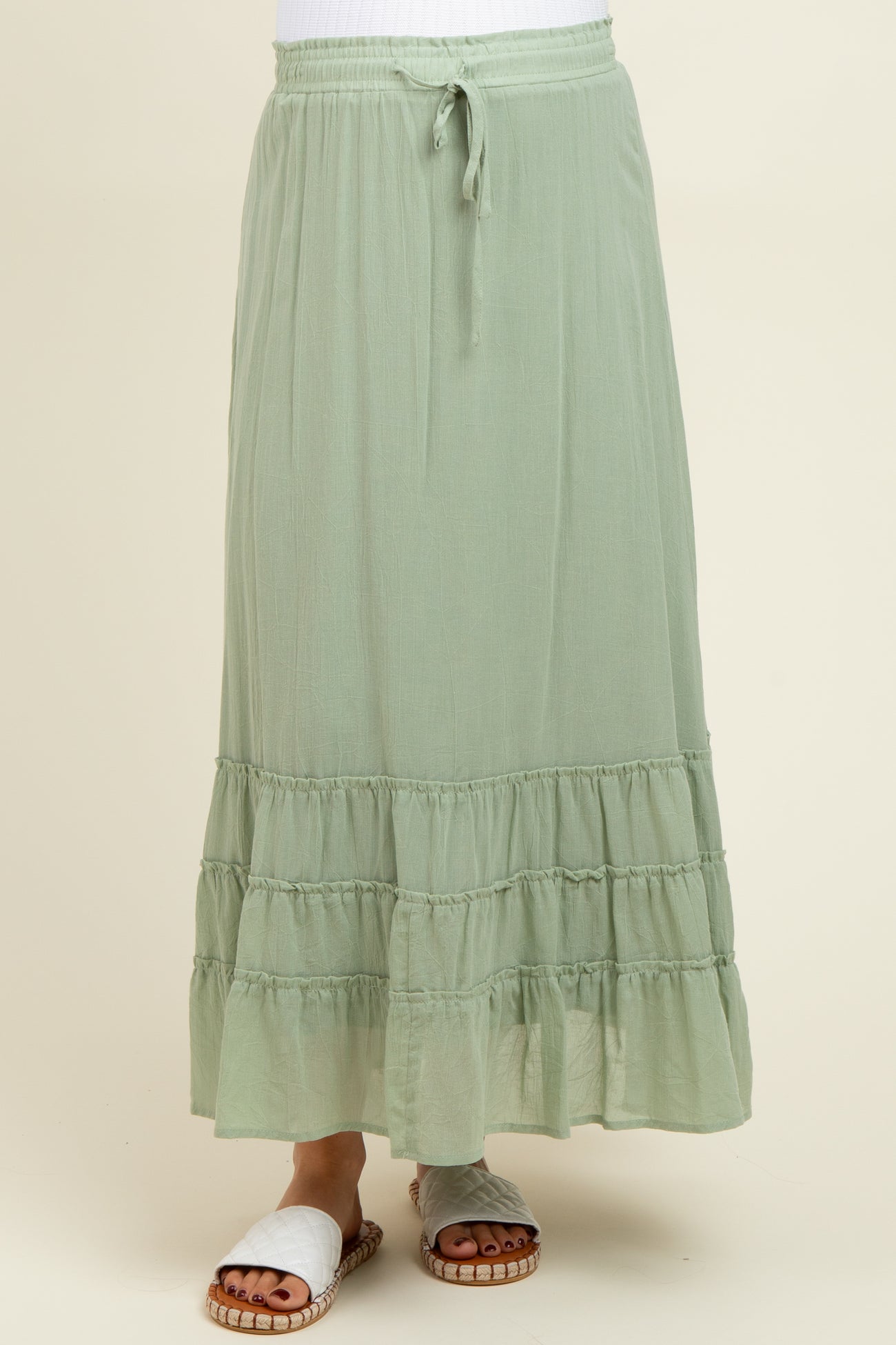 Light Olive Drawstring Layered Ruffle Hem Maternity Maxi Skirt