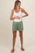 Light Olive Drawstring Waist Tie Maternity Shorts