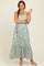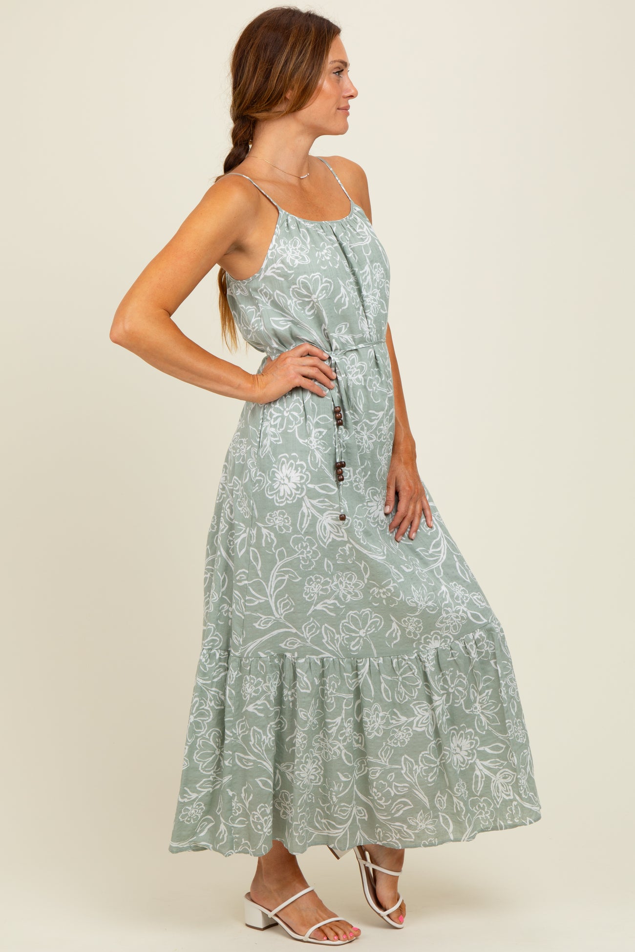 Light Olive Floral Sleeveless Waist Tie Maxi Dress