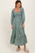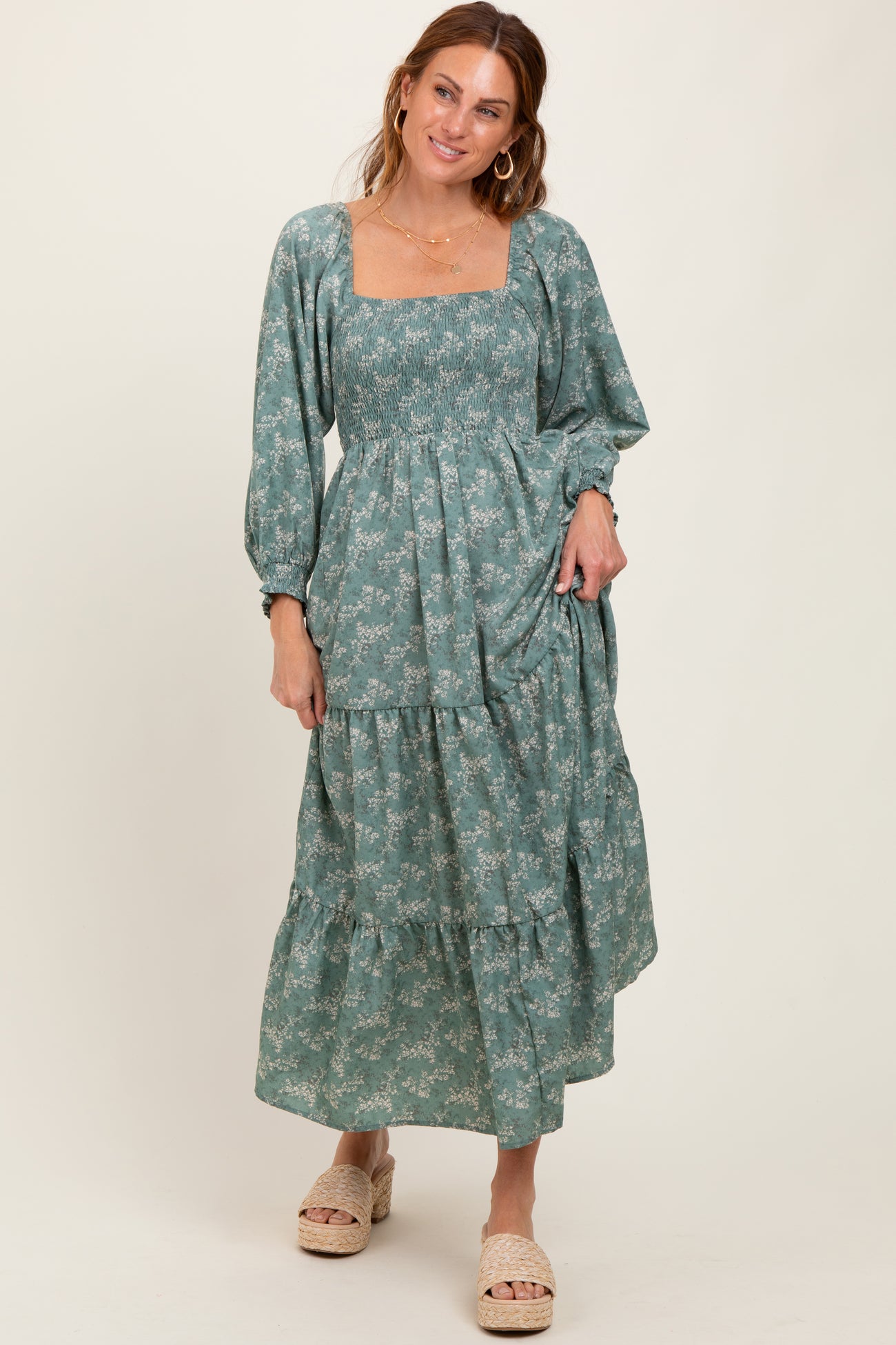 Light Olive Floral Smocked Square Neck Maxi Dress