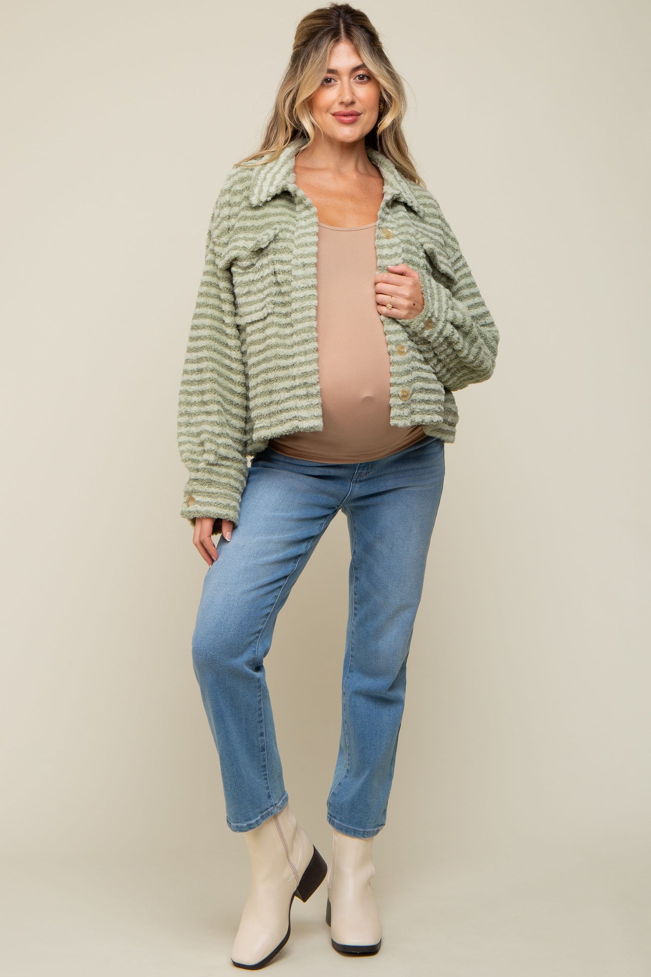 Light Olive Fuzzy Front Pocket Maternity Jacket