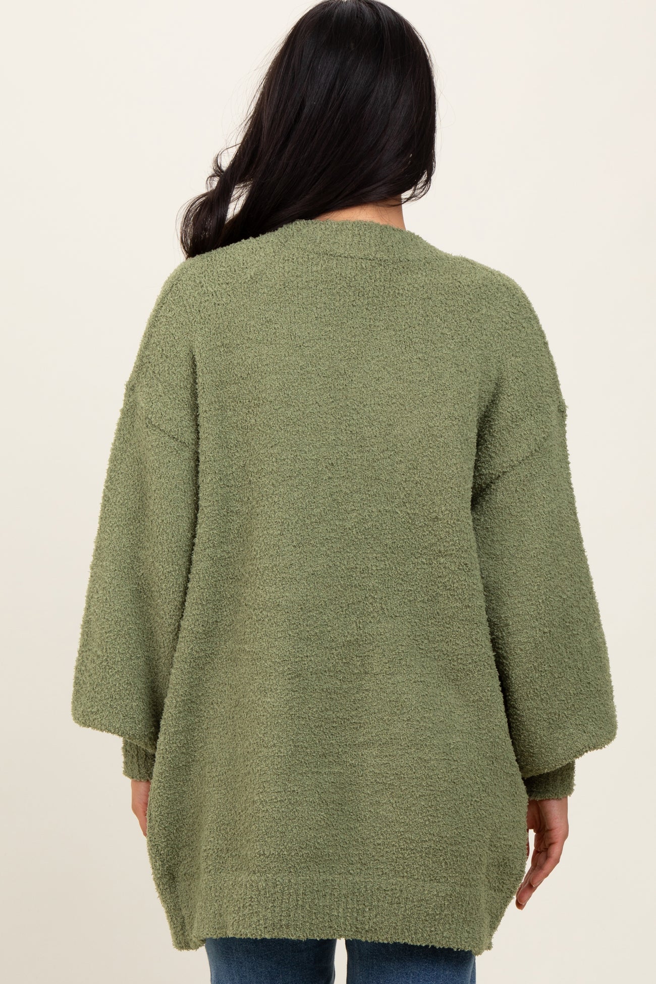 Light Olive Fuzzy Knit Oversized Button Up Cardigan
