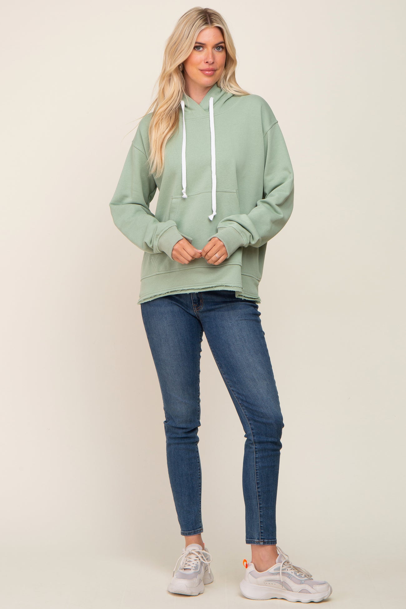Light Olive Raw Edge Trim Drawstring Hoodie