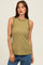 Light Olive Rib Knit Ruffle Trim Sleeveless Top