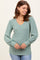Light Olive Ribbed Knit V-Neck Button Cuff Top