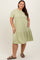 A solid ribbed short sleeve plus dress with scoop neckline and tiered body.
