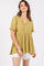 A short sleeve top that includes a v-neckline, and frayed hem.